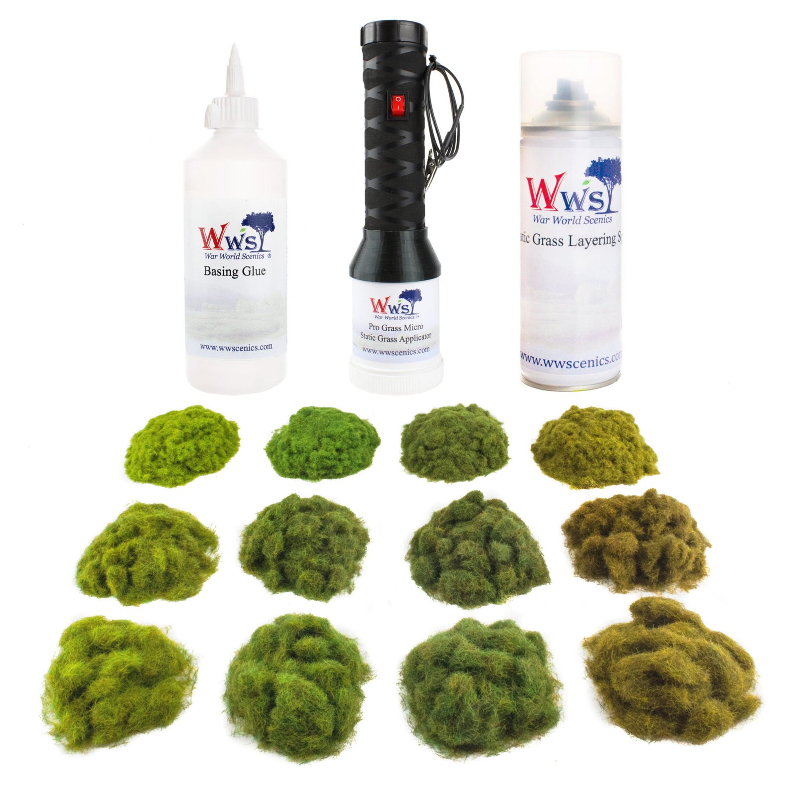 - Kit contains 1 x Pro Grass Micro Applicator, 1 x 500ml Basing Glue, 1 x 400m Layering Spray (UK ONLY: Pump Spray substitution for INTERNATIONAL) Spring, Summer, Autumn & Winter Static Grass in 2mm, 4mm & 6mm lengths